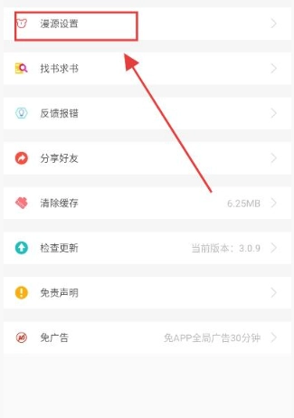2、在设置界面中选择漫源设置