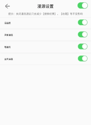 3、有多种漫画源可以选择,点击后方的按钮即可开启或关闭漫画源