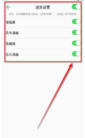 3、就能自由开启或关闭软件自带的漫源了