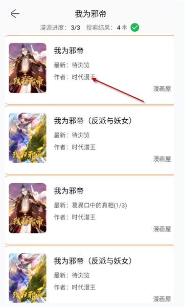 3、在搜索出的结果中点击进入想要观看的漫画