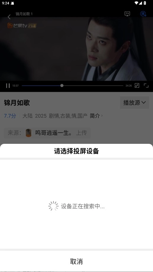 2.点击右上角TV投屏。