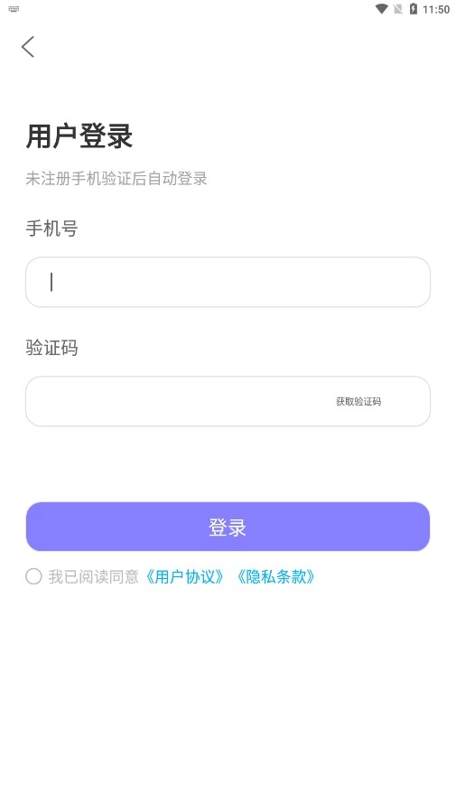 3、输入手机号,获取验证码,勾选协议,点击登录;未注册手机验证后自动登录。