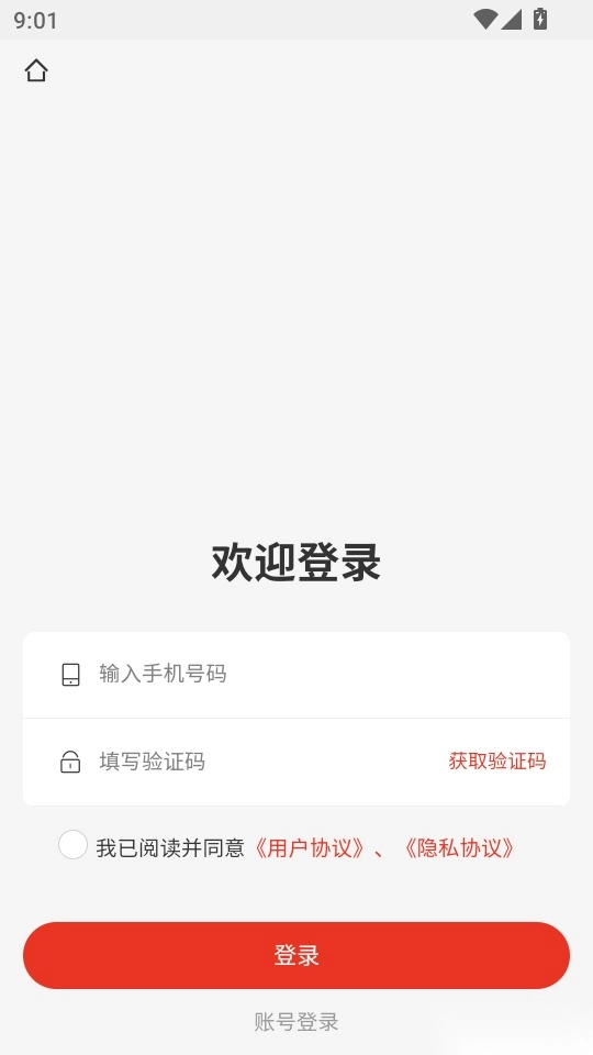 2.在“欢迎登录”菜单界面,输入手机号与验证码后点击“登录”按钮进入程序