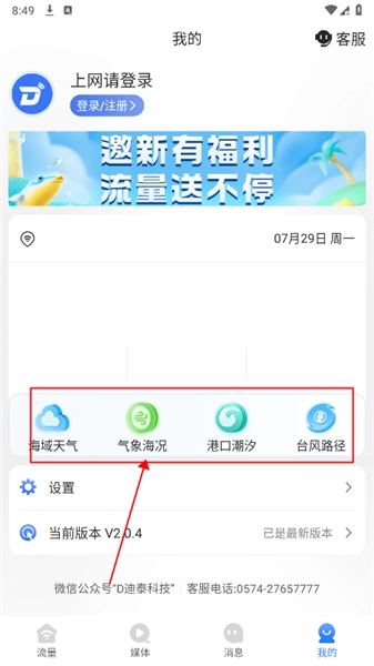 5、我的栏目,可以查看海域天气、气象海况、港口潮汛、台风路径等。