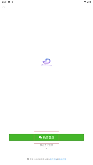 1、进入登录界面后,点击【微信登录】按钮,借助微信完成账号登录操作。