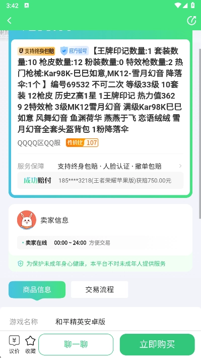 2、提供账号保障服务,确保买家在购买后一定时间内可以申诉和退款