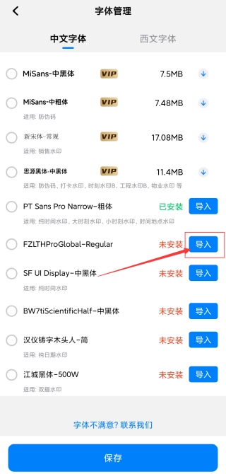 3、在字体管理界面,找到需要的字体,点击其对应的【导入】按钮进行字体导入操作。
