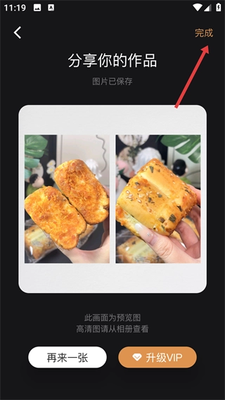 4、图片保存后,点击【完成】,从相册找到它的高清图,就能分享到微信啦。