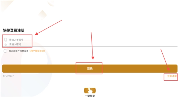 2、输入手机号和密码后点击登录,没账号的话点击立即注册。