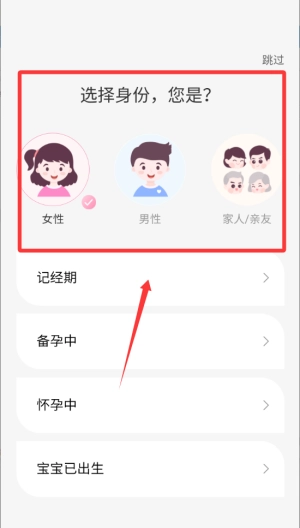 1、按照红色方框里的提示来选择你的身份。