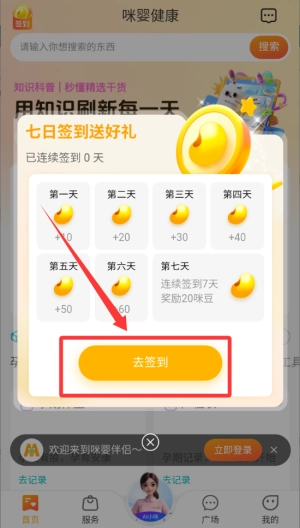 2、进入后点击去签到领取奖励。