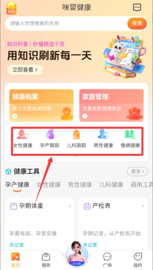 1、学习与计划阶段,新手父母可优先浏览“知识百科”学习科学育儿知识,并根据自身阶段规划所需服务或商品。