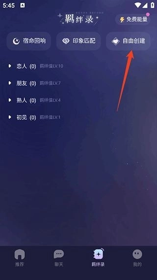 1、进入破次元恋人应用登录后,点击底部导航栏里的羁绊录选项。