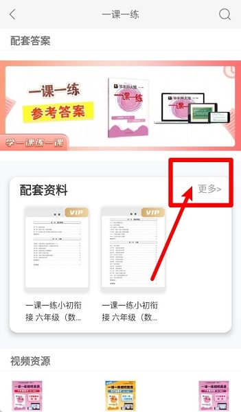 2、需要更多内容时,点击右上角“更多”进入,查看全部年级的相关课程和资源。