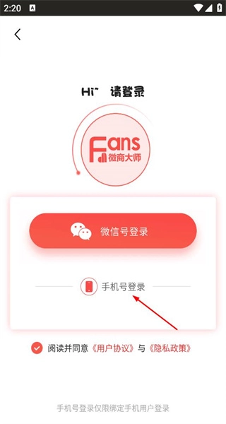 3、在登录界面选择手机号码登录选项,切换至验证码登录的信息填写页面。