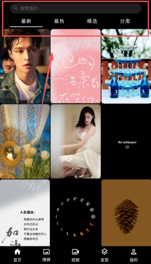 2、进入应用后,用户可以在各类壁纸分类中自由浏览,选择合适的壁纸主题,一键设为手机桌面。