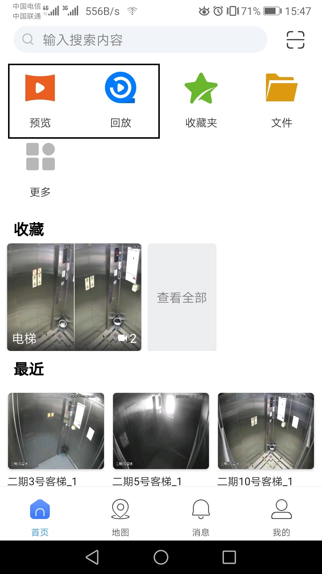 2、进入软件主页,点击预览可以查看实时监控,回放可以查看设备保留的之前数据