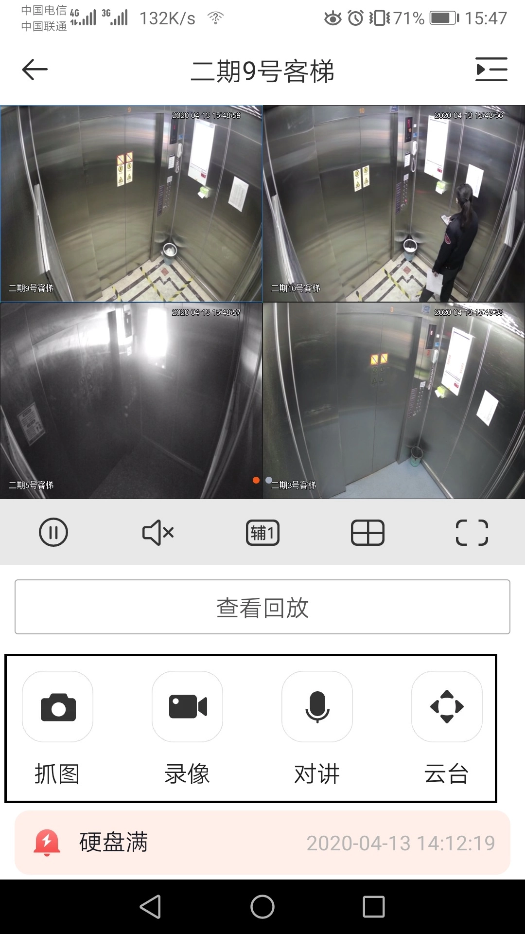 3、随后即可实时查看到监控视频,而且还支持抓图、录像、对讲、云台