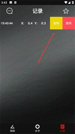 4、在【记录】页面的记录条目上操作,可触发【复制】【删除】功能,对已保存的水平状态记录进行管理。