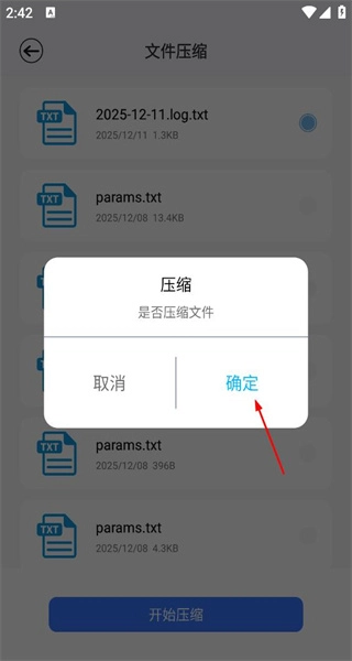 3、点击按钮后弹出确认弹窗,查看提示内容,选择对应选项,确认执行文件压缩的操作指令。
