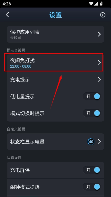 2、在展开的页面中选择“夜间免打扰”功能