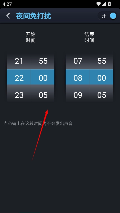 3、进入对应的页面调整好对应的时间段后点击“开”启动功能即可