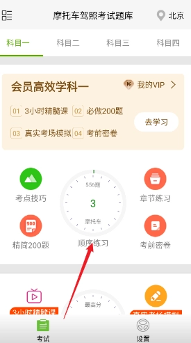 1、启动摩托车驾照考试题库App,点击首页的顺序练习选项。