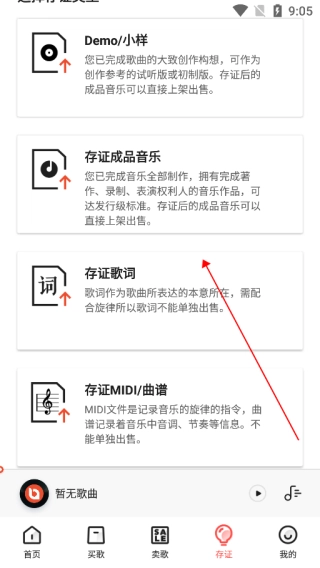 2、可上传Demo/小样、存证成品音乐、存证歌词、存证MIDI/曲谱