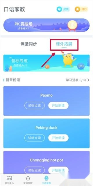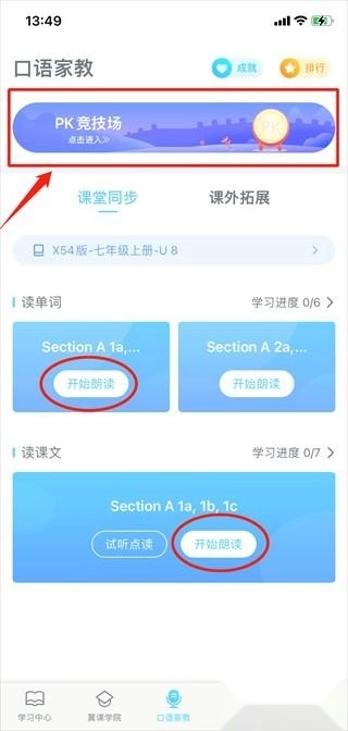 翼课学生 中的口语家教,同步五四制教材、课时,学生练习完口语系统自动评分