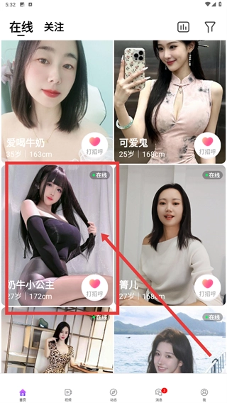 1、在用户列表中找到类似【奶牛小公主】这样的卡片,点击该卡片即可进入对应的用户主页,在主页里能够查看用户的基本信息,还可以发起互动操作。