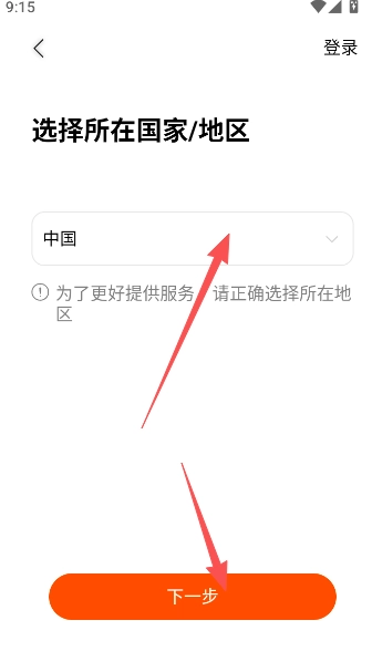 3、选择当前所在国家地区位置,点击进行下一步。