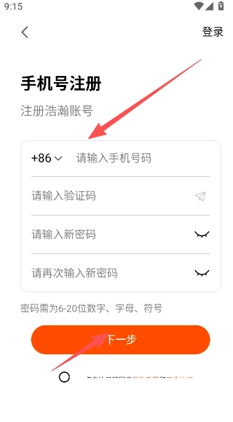 4、以手机号码+短信验证码的方式完成注册。
