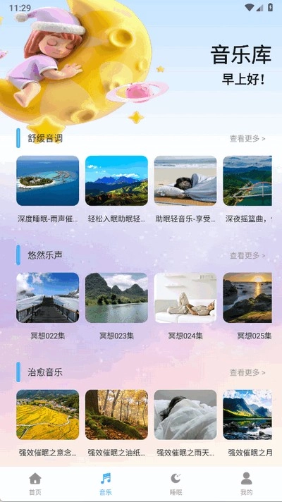 2、点击下方音乐,这里有很多助眠音乐