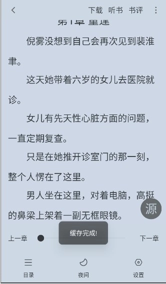 3、离线:在书籍详情页或阅读页面,点击 "" 按钮,选择章节进行缓存,无网络也能阅读