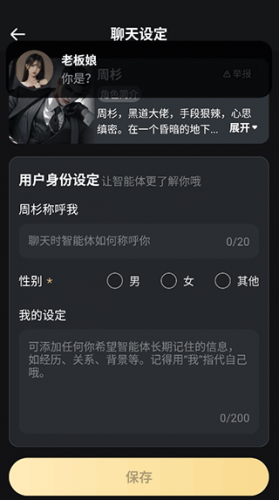 3、在聊天过程中还可以对自己的人设随时进行调整,让ai角色更加能了解你