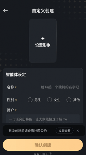 2、支持用户自主创建心仪的AI伙伴,能够自定义设置角色的性格特质、背景故事以及互动模式。