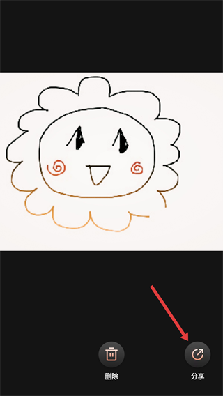 3、在涂鸦照片的详情页面,点击右下角的【分享】按钮。