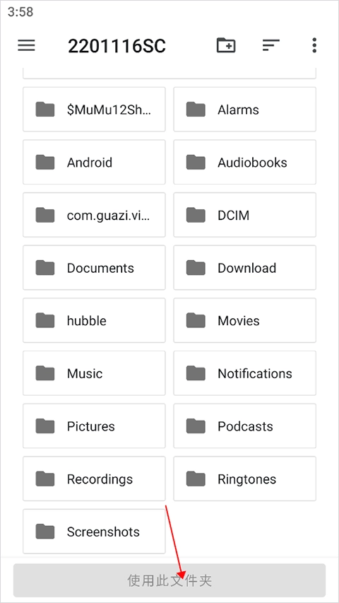 4、浏览并选定目标文件夹后,点击“使用此文件夹”即可。
