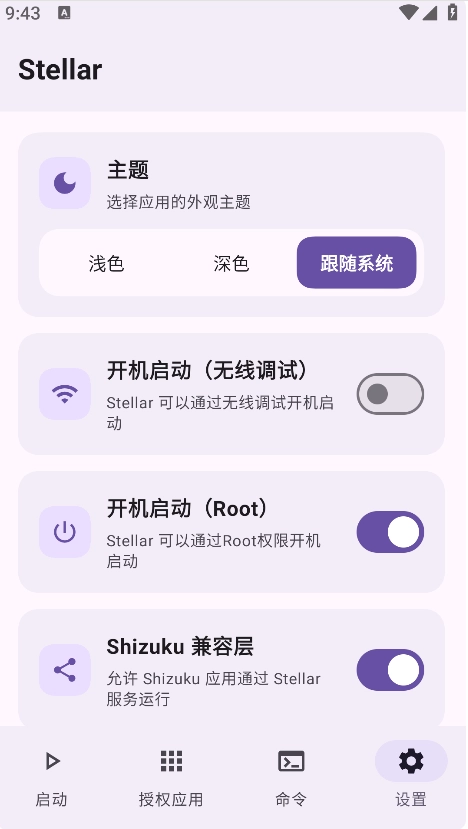 Stellar是一款集迷你安卓系统增强与应用权限管理于一体的助手工具。该软件借助ADB无线调试技术实现所有功能,无需获取root权限即可直接使用。通过Stellar,用户能够轻松实现应用双开、隐私保护模块启用、ADB命令快捷执行等操作。它不仅体积小巧、资源占用低,还具备稳定的后台运行能力,兼容市面上多数手机机型与功能模块,无论是自动切换工作模式,还是创建独立隐私空间,都能轻松应对,堪称安卓手机的“超级权限管家”。