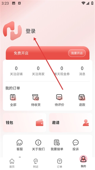 在美天到家的“我的”页面中,点击【登录】区域,即可进入账号登录的操作界面。