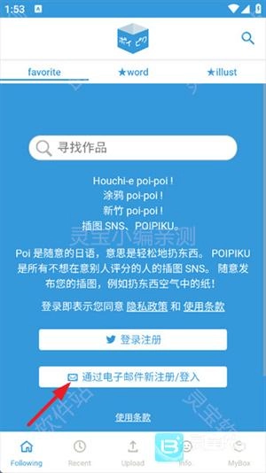 1、安装并打开软件,首先点击“通过电子邮件新注册/登入”选项。