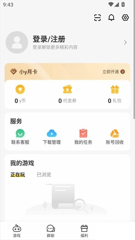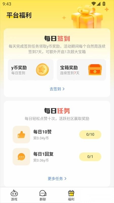 每日签到、每日任务和试玩等领取丰厚y币奖励。