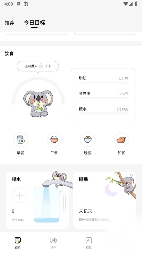 3、在首页可查看到今日目标,记录你每天的饮食量和运动量哦。