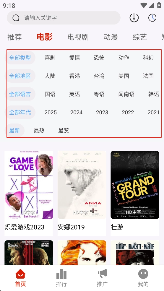 2、电影搜索:支持关键字搜索,快速找到目标电影。