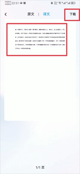 5、最后系统就会为你自动翻译成译文啦,点击按键还可以将译文下来