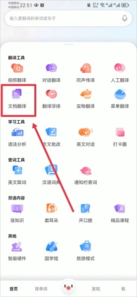 1、在翻译工具里选择文档翻译功能