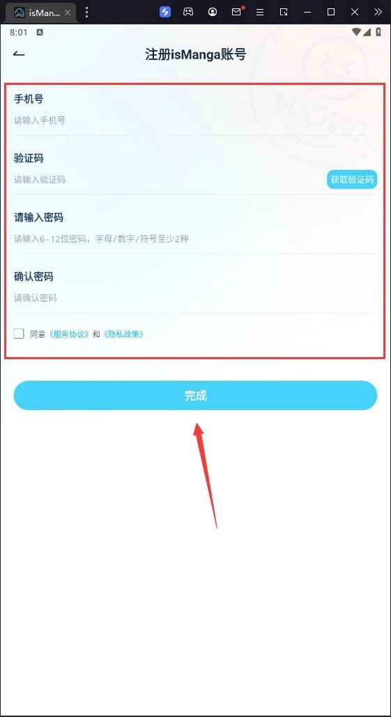 4、按提示完成信息,点击完成即可完成注册