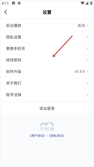 3、在设置页面,点击【修改密码】选项。