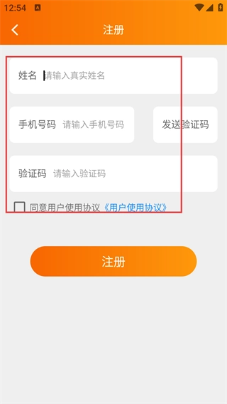 4、在注册页面依次填写【姓名】【手机号码】,点击【发送验证码】并输入验证码,点击【注册】,即可完成账号创建。