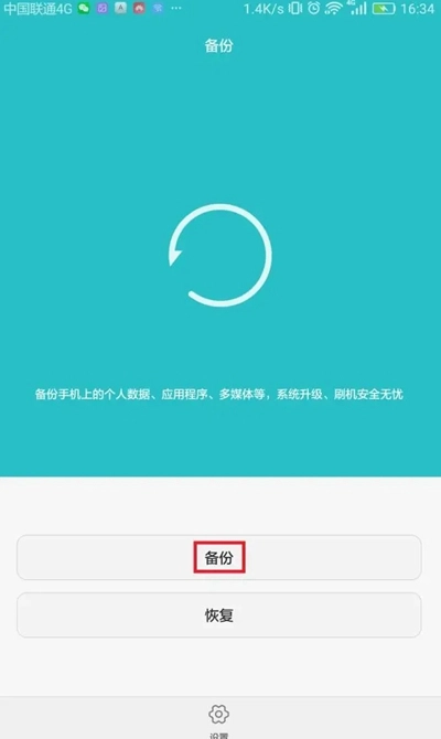 如果有安装该App一般会集成在系统菜单中,可通过“设置-》高级设置-》备份和重置-》备份数据”找到,如下所示。